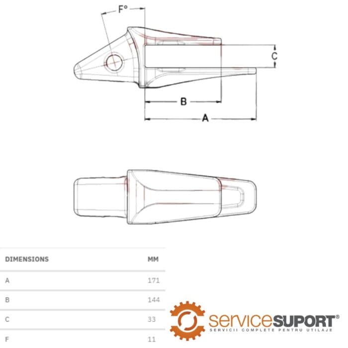 • Dimensiuni: A: 171 mm | B: 144 mm | C: 33 mm | F: 11 mm