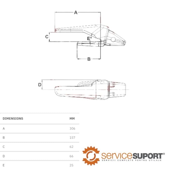 Dimensiuni: A: 306 mm | B: 157 mm | C: 62 mm | D: 66 mm | E: 25 mm