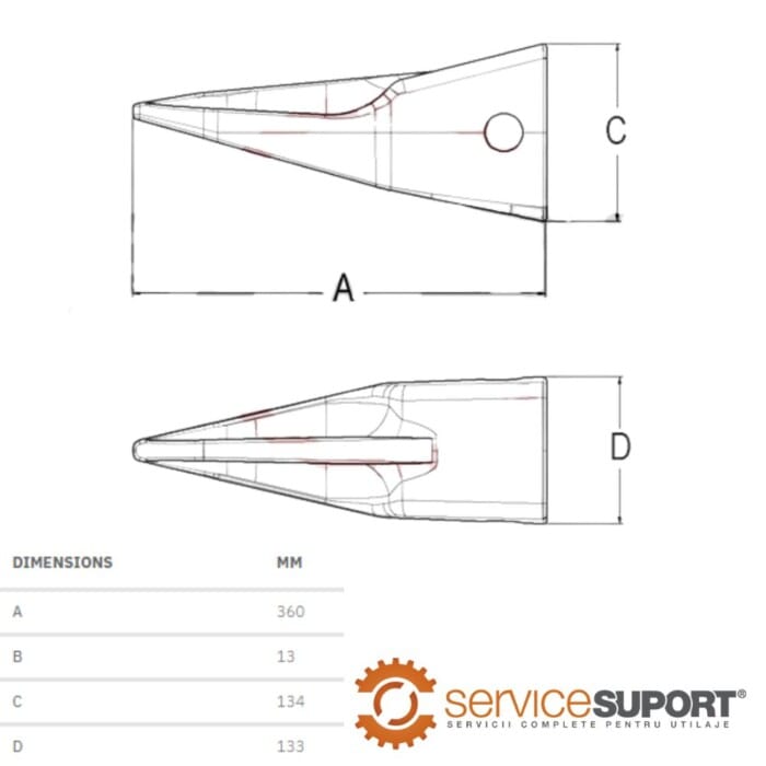 DINTE DE CUPĂ 1U3452TL CATERPILLAR EL300 este o piesă de uzură robustă, proiectată pentru manipularea eficientă a materialelor grele și pentru a proteja buza cupei utilajelor Caterpillar. Designul său asigură pătrundere optimă în sol și agregate, reducând frecarea și uzura generală.