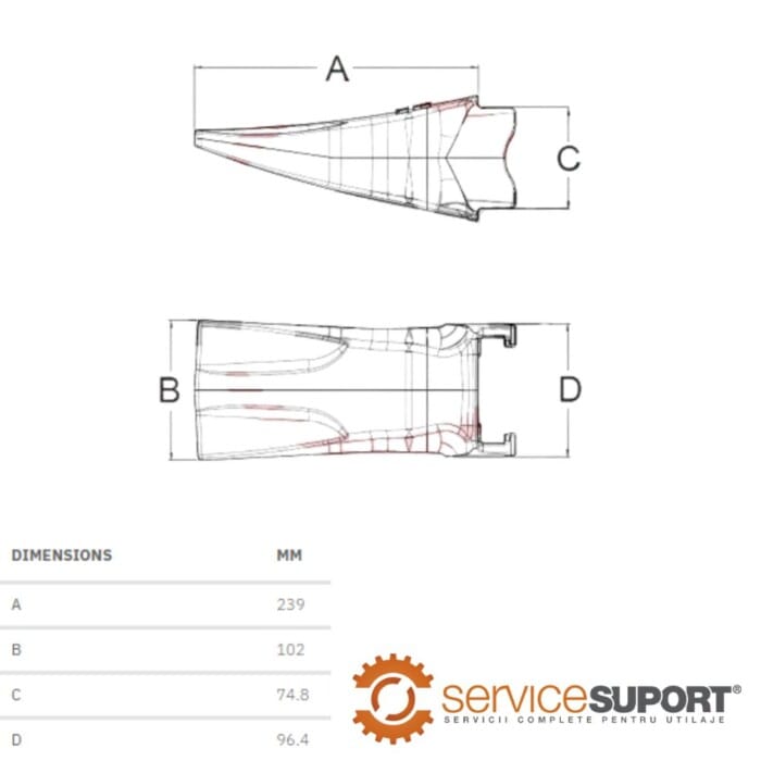 Materialul din oțel aliat, tratat termic pentru rezistență sporită la șocuri și uzură, face ca DINTE DE CUPĂ V29TYL ESCO să fie potrivit pentru lucrări de construcții, săpături generale, fundații și aplicații unde fiabilitatea pieselor de atac este esențială pentru continuitatea activității.