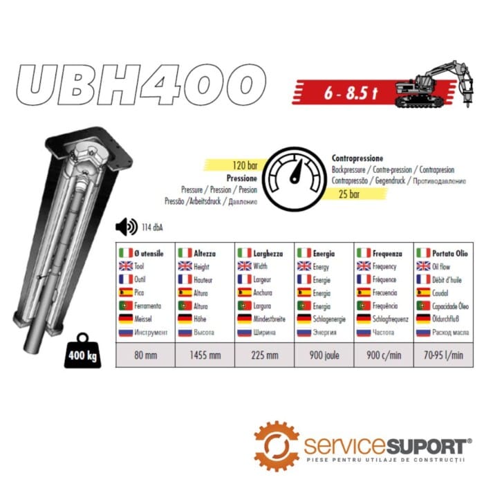 Picon hidraulic ITR UBH400 MONOBLACK compatibil cu utilajele de 6-8.5 tone.