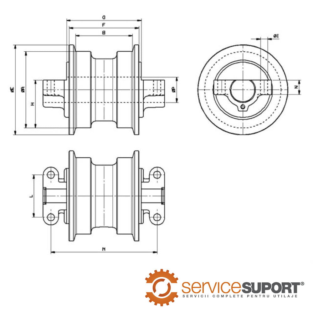 Rola inferioară UF210E0E ATLAS-TEREX 2004 este compatibilă cu o gamă extinsă de excavatoare, foreze și utilaje grele, printre care: